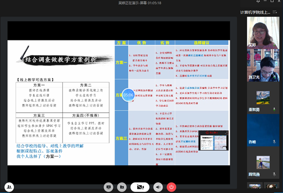 前三周的线上教学运行情况。学生代表提出了线上学习过程中出现的问题和困惑。针对同学们的问题以及线上教学面临的困难和挑战,五位教师从不同角度进行了经验分享。刘凤华老师从课堂教学设计入手谈《如何上好一堂课》;吴婷老师总结了在线学习平台和工具的经验与实用技巧,分享了《线上教学技巧及心得》;张茜老师通过《线上教学实践中探索“以学习者为中心”教学模式》来分享如何做好过程性管理,真正实现“以学生为中心”,提高学生学习效果;王海龙老师阐述了如何通过引进优质教学资源,消减疫情对教学的影响,提高教学质量;周雪燕老师分享了《用心打造翻转课堂、助力线上教学》。(通讯员 王佩雪)