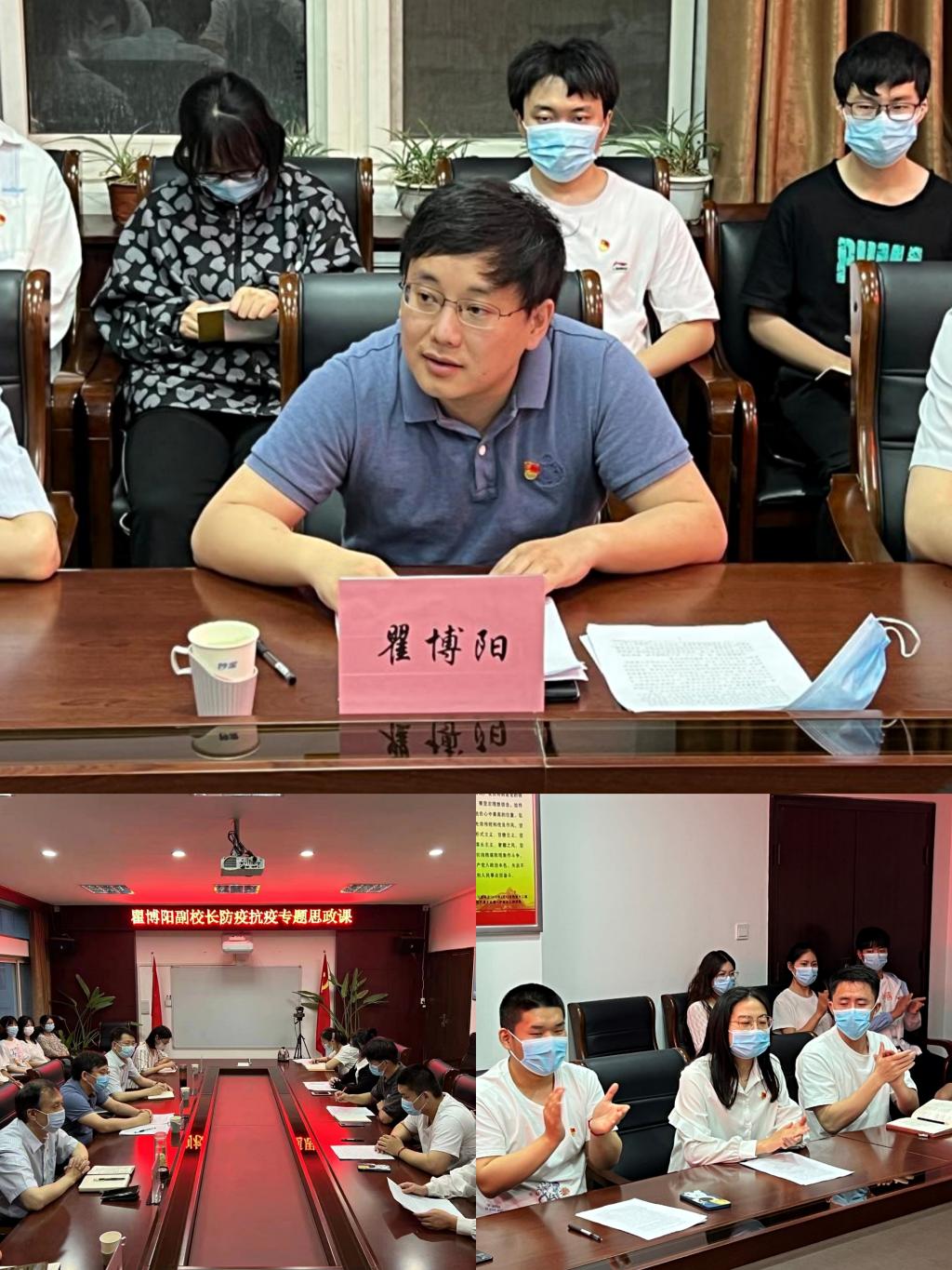 瞿校长指出,夺取疫情防控斗争全面胜利,是对广大党员、干部的重大考验,既考验敢于斗争的勇气,又考验善于斗争的本领。在这场严峻斗争中,各级政府、全校各级党组织和广大党员、干部冲锋在前、英勇奋战,充分发挥了战斗堡垒作用和先锋模范作用,生动体现了“人民至上、生命至上”的防疫理念。他对大家提出四点要求:一要保持清醒头脑,把握好大局;二要锻炼身体,强健体魄,做好个人防护;三要保持积极心态,保持乐观态度;四要合理利用时间,安排好生活学习。