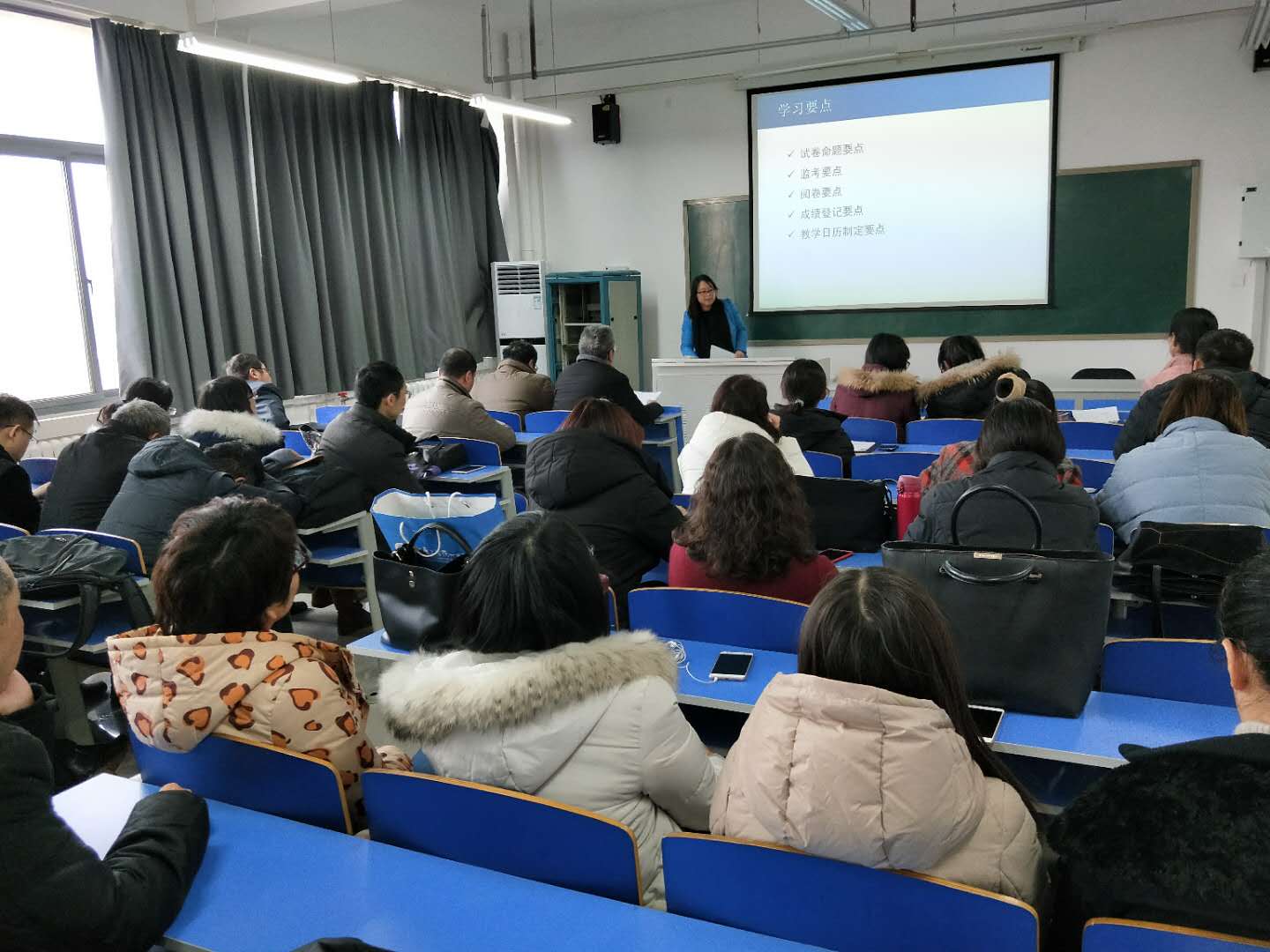 学生学习考核工作规范》、《监考手册》等教学管理文件,从试卷命题、保密制度、监考纪律、试卷评阅、成绩报送等工作流程和规范进行了全面解读,就教学考核工作过程中容易出现的问题,向与会老师作了详细的解释和说明。