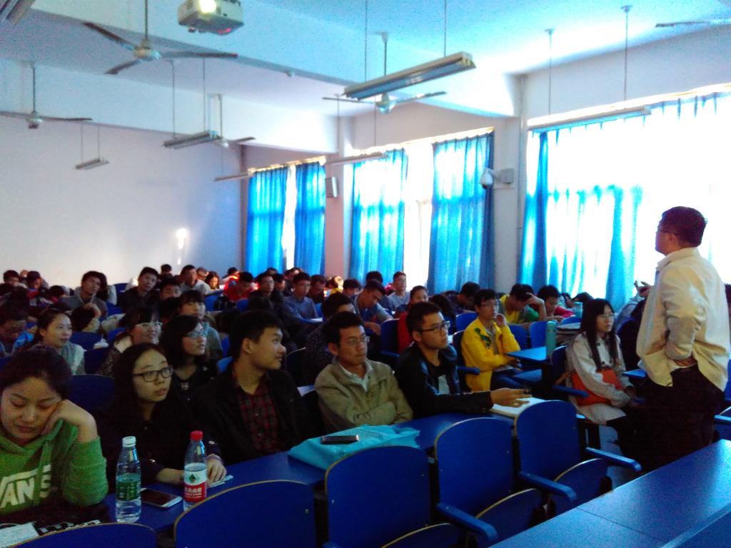 副院长刘卫光教授主持了讲座,向同学们介绍了杨关老师的主要学术成果以及本次讲座的主要内容。杨关老师,信息计算科学博士,硕士生导师,研究方向为图像处理、机器学习和模式识别,曾先后主持参加国家自然科学基金项目2项、国家外专局高端外专项目1项、河南省基础与前沿技术研究计划项目2项、河南省科技攻关项目2项等。概率图模型(Probabilistic Graphical Models,PGM)近年来在人工智能、机器学习和计算机视觉等领域受到广泛关注。报告会上,杨关老师就概率图模型理论及其在图像处理中的应用进行了深入的剖析,并结合实际,与到会同学分享了近年来的科研体会和心得,整场报告深入浅出,精彩纷呈。