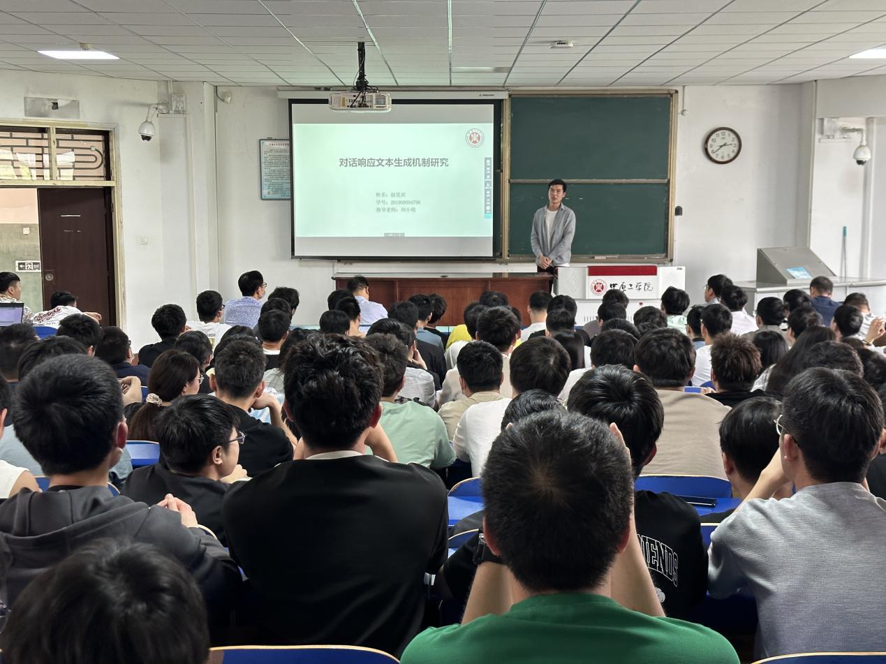 经各系推荐、学院择优遴选,信息安全191班王星宇和人工智能191班赵昊宾参加了本次优秀毕业设计公开答辩。答辩会上,两位同学通过PPT演示、设计作品讲解自己的毕业设计成果,对设计思路、研究方法进行了详细的说明。针对评审组和师生提出的问题,王星宇和赵昊宾同学充分展示了扎实的专业基础和优秀的表达能力,展现了我院毕业生的综合素质和学术水平。答辩现场座无虚席,秩序井然,气氛热烈,氛围浓厚。