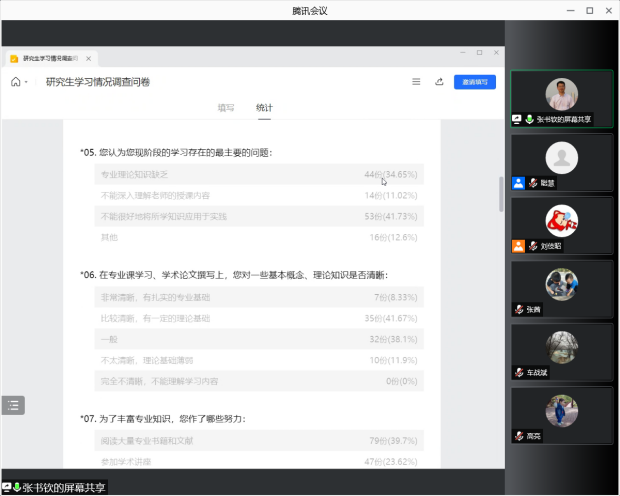 研究生学习情况调查问卷结果反馈各位研究生导师,并将调查问卷内容中涉及研究生学习情况、教师教学评价、导师指导情况等方面存在的问题进行分析。建议各位研究生导师根据调查问卷反映的问题,加强研究生交流指导,重视专业课设置安排等问题。杨关副院长指出:1.要求各位研究导师认真学习“正妹av