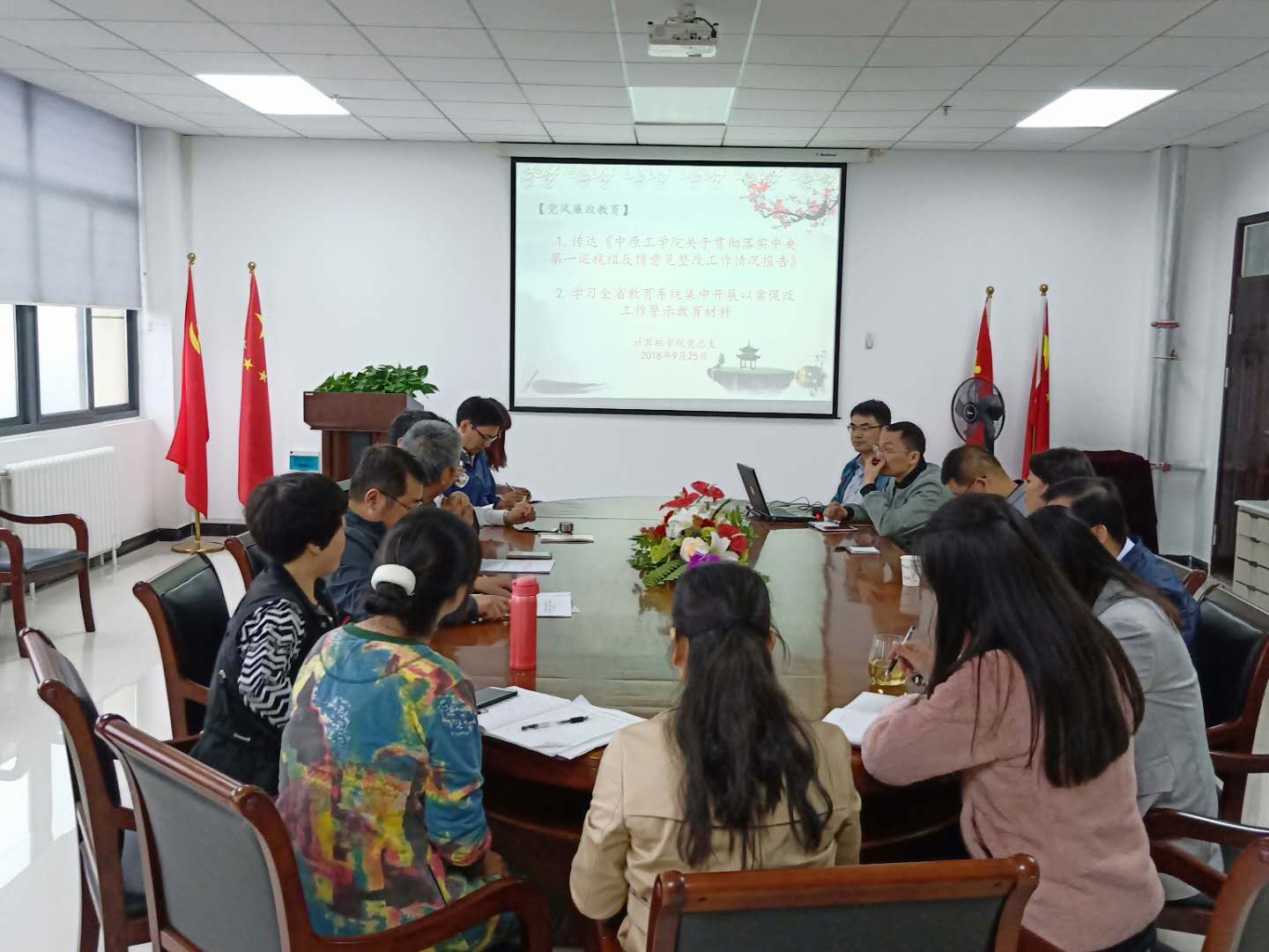 关于落实中央第一巡视组反馈意见整改工作情况报告》,纪检委员杨关副院长对近期发生在我省高校典型案例进行了通报,学习全省教育系统集中开展以案促改工作警示教育材料。最后,张启峰书记对班子民主生活会、各支部组织生活会开展情况进行了通报。对推进以案促改制度化常态化提出了要求:今后以案促改学习要常态化,要加强正面教育,弘扬正气。在工作中要加强学习,以案为鉴。为学校、学院健康有序快速发展营造良好的政治生态环境。(通讯员 刘红)