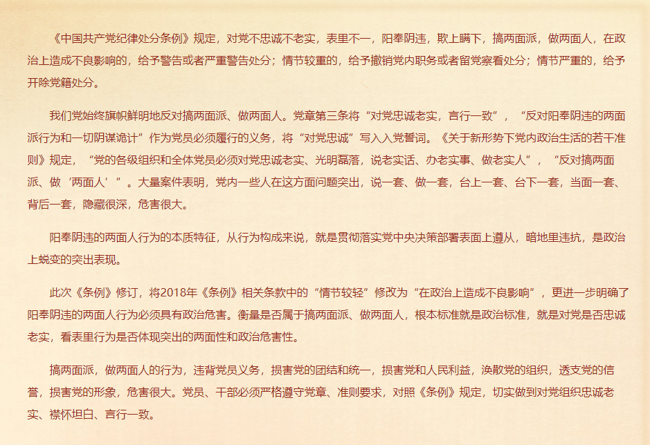 对搞两面派、做两面人的处分规定有哪些?