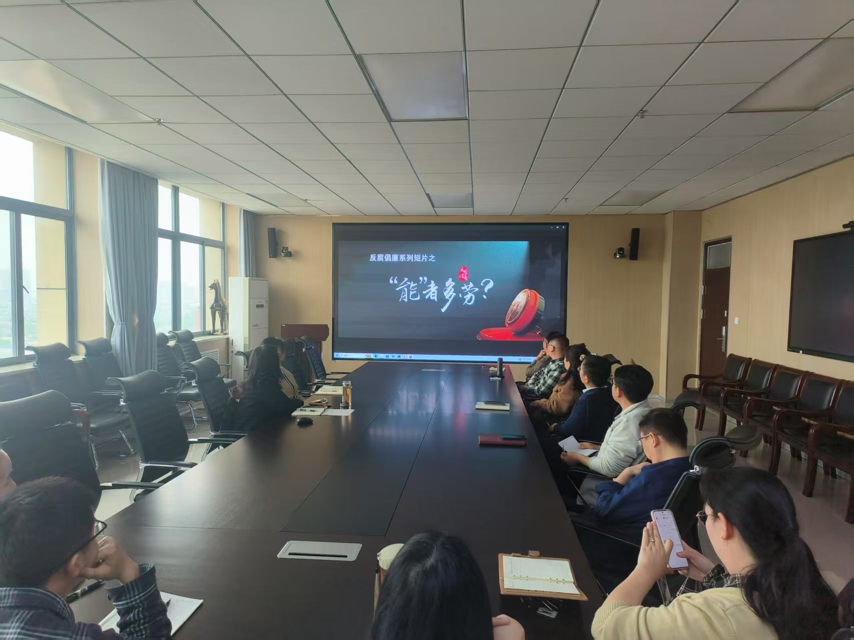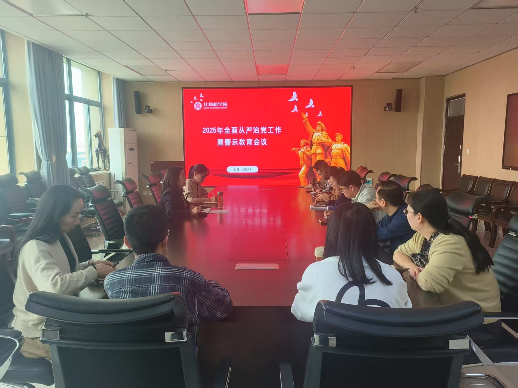 在3号组团楼A1116学院会议室召开了党委理论学习中心组(扩大)会议,会议聚焦2025年全面从严治党工作进行工作部署,并开展了警示教育专题片学习。学院全体党委委员、党支部书记、科级干部及部分党员师生代表参加了此次会议。