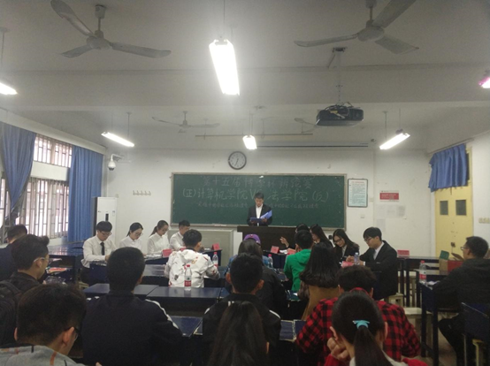和法学院在十一号楼311教室展开了激烈辩论。刘伟杰、苗佳昕、陈淑红、赵紫楠四位同学代表我院参加比赛。
