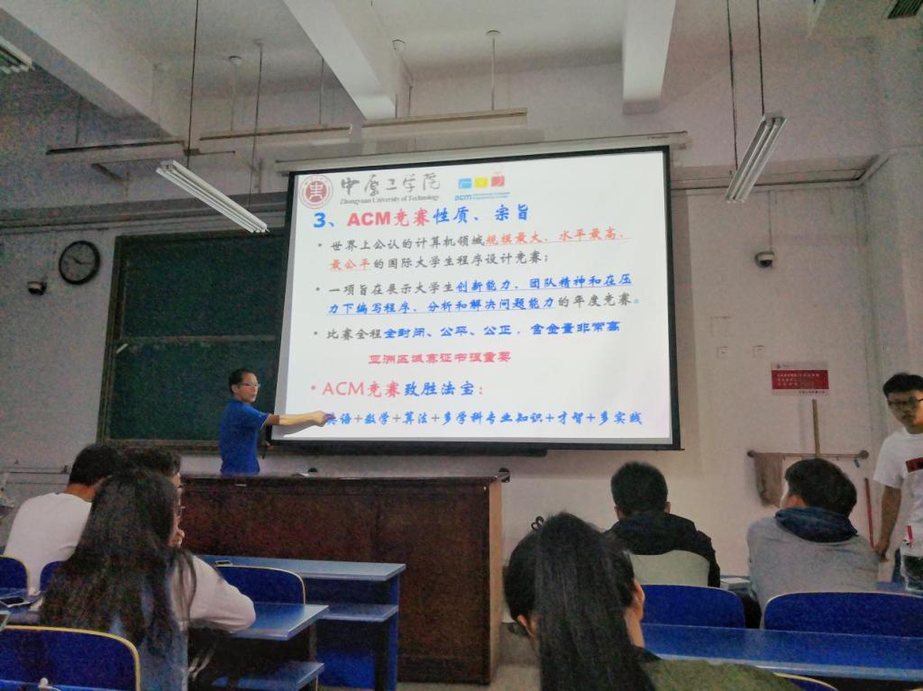 2018年9月21日,为了帮助18级同学找到奋斗目标,ACM负责人吴志刚老师和崔岩老师为新生普及了ACM的相关知识。