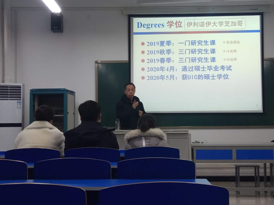 李向东老师,作为UIC推荐读研项目对接负责老师,为我院15、16学生做项目介绍。UIC是芝加哥唯一公立研究型大学,计算机专业排名全球四十名之前,UIC和我院建立了学术及人才培养合作关系,为推荐优秀学子继续读研深造提供了新的途径和机会。