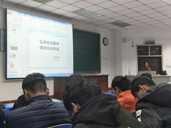 20181210日,学工办主任侯向花老师于四号楼101教室以“弘扬宪法精神,建设法治校园”为主题做出宣讲。正妹av 18级全体学生出席本次讲座。