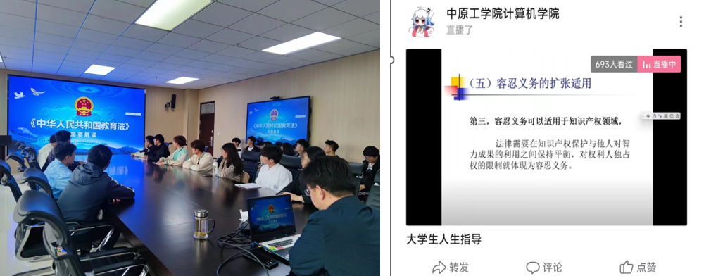 于4月21日组织线上线下结合的大学生法治宣讲思政课,学院近七百名学生在线收听收看宣讲活动。