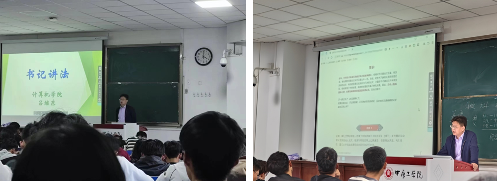 党委书记吕继东,给学院近二百六十名新生上了一堂生动的法治宣讲和思政教育课。