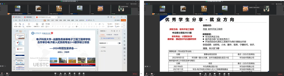 、人工智能学院应邀,组织学生参加了电子科技大学与法国鲁昂高等电子工程工程师学院合作办学项目电子嵌入式系统专业2+0理学硕士2024线上招生宣讲会。
