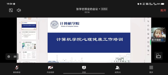 于2024年4月2日晚上在腾讯会议开展了心理健康工作培训,本次培训会面向我院四个年级各班心理委员以及宿舍心理信息员,由学院辅导员老师主讲。