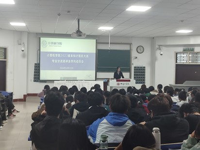 在4号教学楼101举办了2023级计算机类专业分流暨学风建设动员会。学院党委副书记侯向花,2023级辅导员王腾出席本次会议,2023级全体学生参与了本次宣讲会。