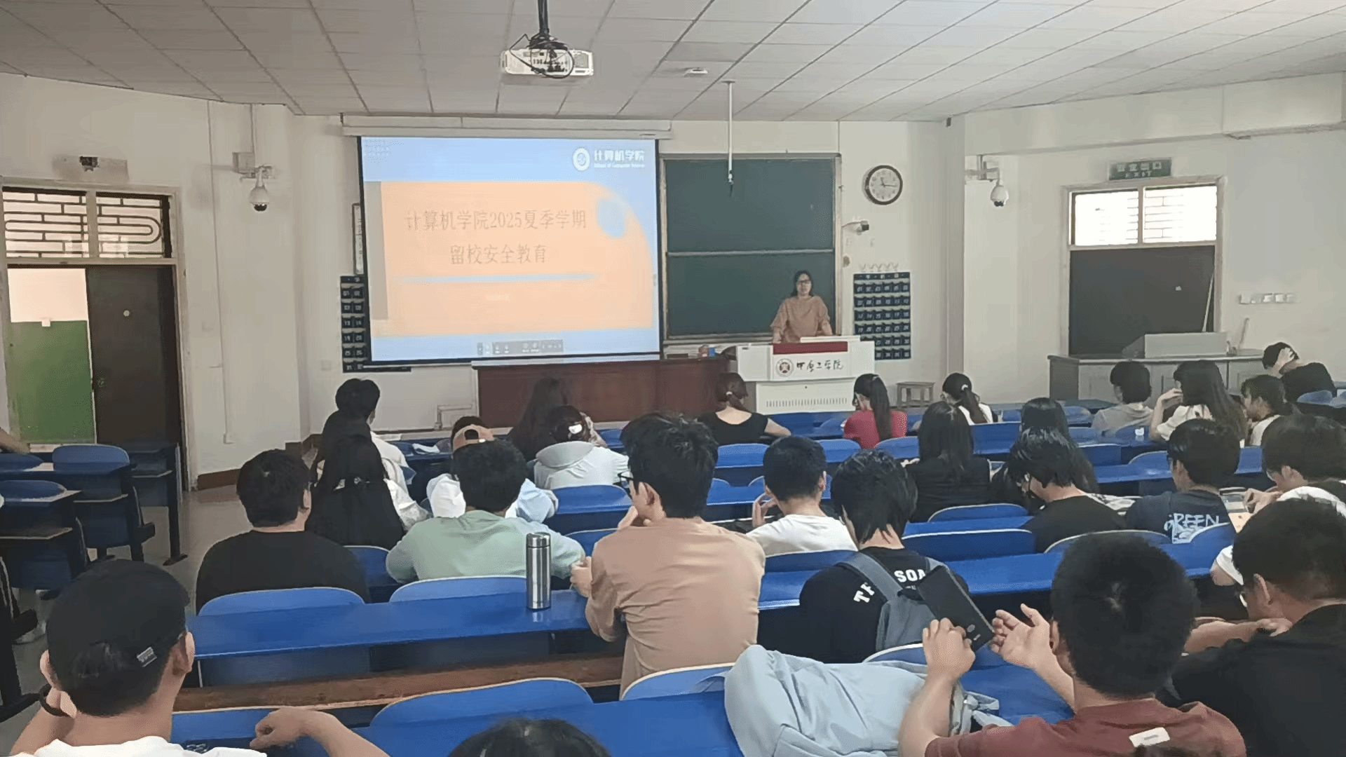 2025年夏季学期留校学生安全教育会在4号教学楼101教室顺利召开。学院党委副书记侯向花、学工办全体辅导员老师,以及200名留校学生共同参与。旨在强化留校学生安全意识,保障学生暑期在校安全。
