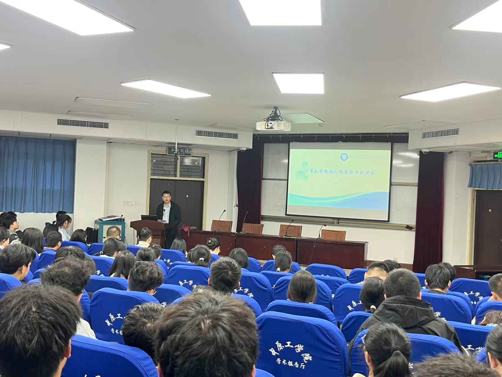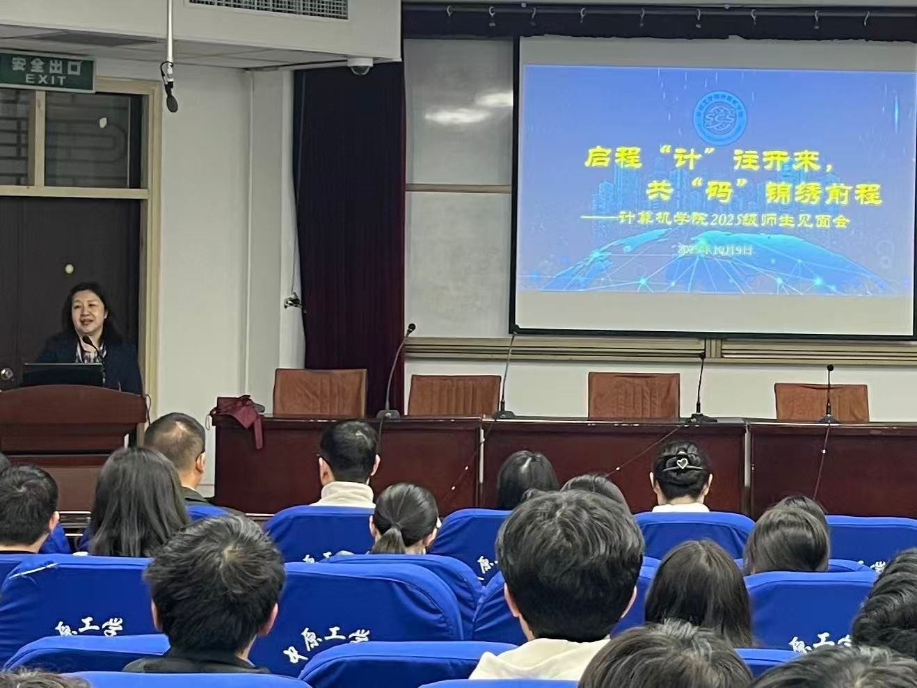 “计”往开来启新程——2025级新生师生见面会在4号楼311会议室举行。学院党委书记苗凤君、执行院长张书钦,计科系、网络系、信安系、物联网系及院实验中心、教学办负责人刘金金、杨要科、刘伎昭、高丽平、裴斐、刘园园老师,2025级新生辅导员、全体2025级本科新生共同参与,会议由学院党委副书记侯向花主持。