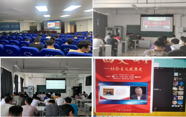 于5月9日、5月15日、5月22日组织在校生六百五十多人,在多个教室及通过网络会议形式,集中收看了全国大学生同上一堂思政大课“四史”讲堂第二、三、四讲直播及回看了第一讲内容。