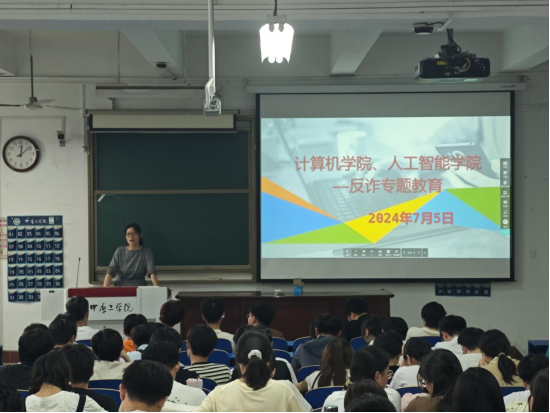(人工智能学院)开展反诈专题教育活动,学院党委副书记侯向花、各年级辅导员和全体本科生参加活动。