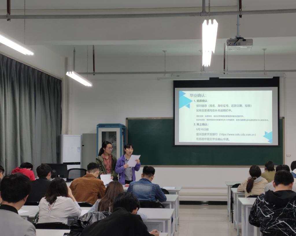 会上,学院资助助理顿琼、娄梦月,分别向全体贷款学生详细讲述了我院学生贷款情况、发放了《国家开发银行高校国家助学贷款还款指南》、《国家开发银行助学贷款支付宝生活号手机还款流程》等资料,指导大家熟悉国家贷款政策、了解还款流程,牢记诚信义务。之后,专门针对即将离开学校的19届贷款毕业,强调了毕业确认手续办理、毕业后还息还本流程及相关注意事项,资助助理对相关手续进行了解疑答惑,发放了《正妹av
