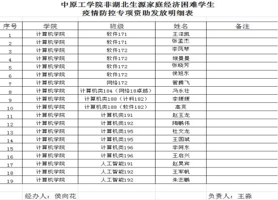 非湖北生源家庭经济困难学生疫情防控专项资助发放名单