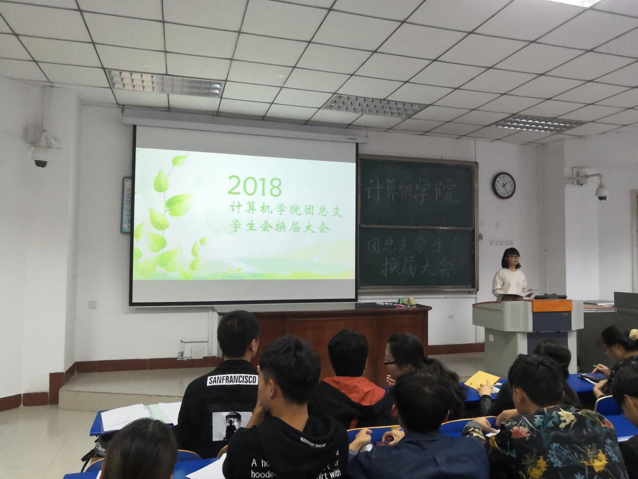 大会开始由于倩静老师发表开幕词,提出学生会成员要从严要求自己,在同学间树立起榜样。其后,副主席徐晓从加强组织建设、完善制度、整理档案、细化各部职责、学习氛围等方面,总结报告了2017至2018学年学生会工作。团总支副书记吕帅在做述职报告时强调,要加强精神建设,加强新媒体建设。团总支学生会副主席吴梦莹表达了对老师与同伴的感恩,对新鲜血液与未来发展寄予厚望,“聚是一团火,散是满天星”。2018-2019届学生会副主席刘晨虹在做工作展望时强调学生会的奉献精神与集体的凝聚力。接着,各位老师为学生会成员颁发工作证,正式进行换届仪式。最后,由2018-2019届团总支学生会副书记邢正路带领本届学生会成员进行庄重的任职宣誓。