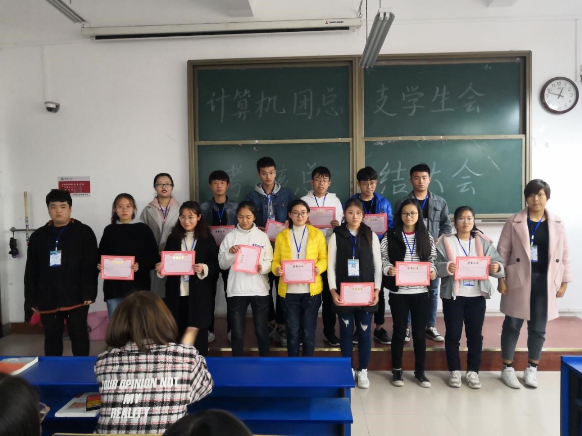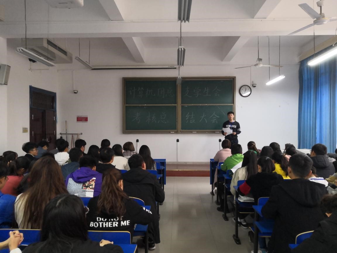 团总支学生会于2018年11月15号中午在3#132教室举行了考核总结大会。会议由主席团成员邢正路主持,于倩静老师以及全体学生会成员出席会议。