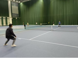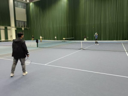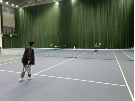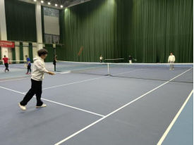 新生网球友谊赛在室内网球场顺利举办,学院网球爱好者们组队参与,在赛场中展现竞技热情与团队默契。