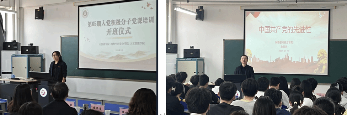 、网络空间安全学院与人工智能学院联合举办的第65期入党积极分子党课培训班开班仪式在三号组团A908教室隆重举行。党委组织部副部长、机关党委副书记王淼,网络空间安全学院党总支书记詹晋浩,正妹av