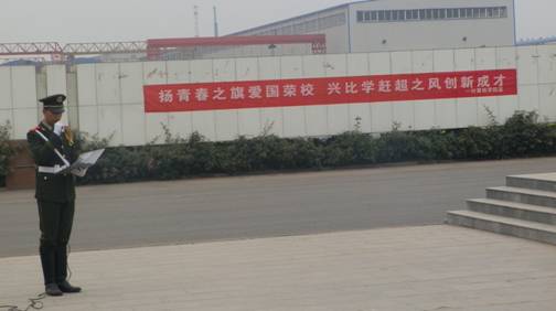 在升旗仪式上,党总支副书记卢世海发表了讲话,他讲述自己对爱国荣校的理解,分析了当今社会对于人才需要的形势,并对同学们寄予了殷切的期望,他希望同学们能利用大学宝贵的四年时间认真做好每一件事,牢记爱国使命,争做优秀大学生。