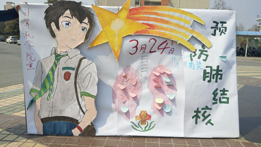 本次活动,团支部成员用展板宣传了“世界防治结核病日”,组织大家在便利贴上写了预防结核病小标语,并结合新时代精神开展了十九大两会知识竞赛与简答结核病基本知识游戏比赛。