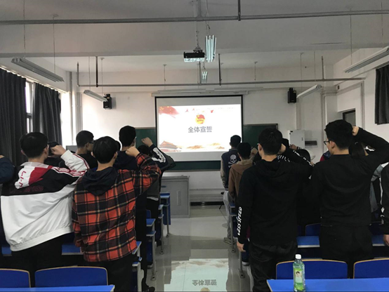 活动开始,团支书先就新时代的主题讲述了进入习近平新时代的变化,为支部成员播放“新时代 新变化”的宣传视频,让支部成员更清楚的了解到新时代的不同。随后介绍了自己学习2018.6.26日召开的团的十八大和习近平7.2日在中南海讲话的内容及精神的心得。传达了国家对青年团员的重视。“青年兴则国家兴,青年强则国家强”的深情寄语也再次提醒支部成员背负了实现中国梦伟大重任。支部优秀团员邢朋举、刘研随后也分享了自己对团的十八大及7.2讲话的心得体会。邢朋举呼吁青年团员在这个承载新梦想,开启新征程的伟大新时代,应该树立自己的理想艰苦奋斗;刘研表示青年的价值取向决定了整个社会的价值取向。青年正处于世界观、人生观、价值观形成的关键时期,应该积极走在培育和践行社会主义核心价值观的前列,加强品格涵养 ,从小事做起,永远保持奋斗精神。活动的最后,软件172团支部全体成员肃立宣誓,表达了自己不负众望、艰苦奋斗的决心。