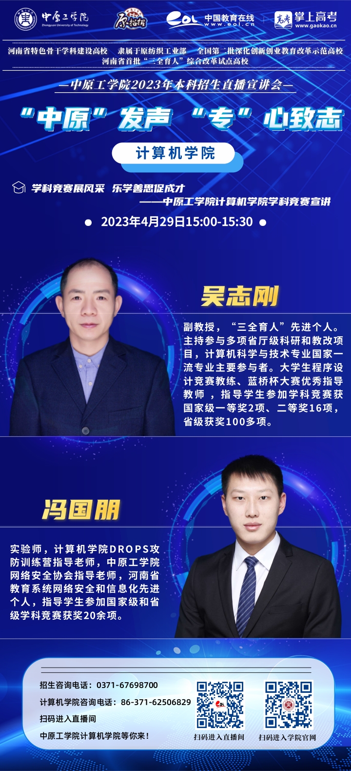 学院拥有河南省重点学科计算机科学与技术一级学科及硕士学位授权点,2018年获批为河南省博士学位授权立项建设单位支撑学科。经过长期发展,计算机科学与技术形成了“机器学习与图像处理”“数据分析与自然语言处理”“网络与信息安全”三个学科方向。电子信息类形成“智能视觉计算与机器学习”“自然语言处理与知识表示”“信息安全”三个方向。并招收计算机科学与技术(学术型硕士)和电子信息类(专业型硕士)硕士研究生。目前,我院先进计算研究方向的科研开发和社会服务能力处于国家前列,在网络安全评估、网络舆情内容分析、医学图像处理、医学文本分析和数据可视化等研究领域的科研实力位于河南省前列。建有“河南省工业互联网安全大数据发展创新实验室”“河南省本科高校智慧教学管理创新研究实验室”“郑州市文本处理与图像理解重点实验室”、正妹av