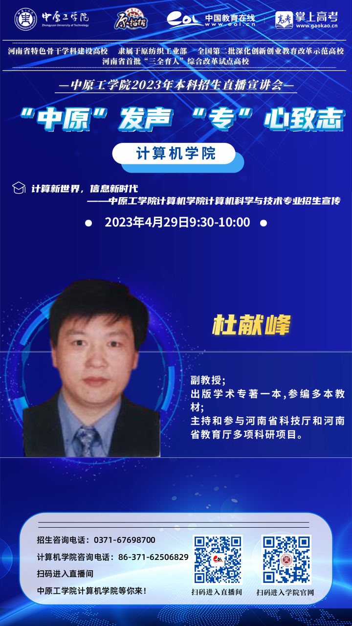 专业特色:本专业1994年开始招收“计算机及应用”专业本科生,是河南省较早招生的本科专业之一,1999年专业更名为“计算机科学与技术”。2019年获批河南省优秀基层教学组织,2020年通过国家工程教育专业认证,同年获批国家级一流本科专业建设点。本专业以新工科建设为引领,工程教育认证理念为导向,根据社会经济发展人才需求,跟踪专业前沿,及时更新授课内容,设置大数据、物联网和嵌入式课程;坚持产学研协同育人,依托省级教学实验中心、省级重点实验室等平台和校外实习基地,培养学生工程实践能力;积极组织指导学生参加学科竞赛,不断提升人才培养质量。经过不断探索和持续改进,本专业已形成如下办学特色:(1)全面贯彻基于产出(OBE)的工程教育理念,培养与国际接轨的计算机工程技术人才;(2)强化创业创新和专业竞赛活动,推进创新人才培养。